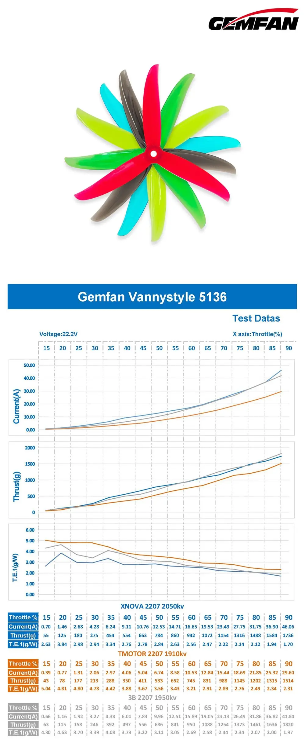 · 2 adet Gemfan Vanover 5136 3 Kanatlı Pervane Mavi (CCW – Saat Yönünün Tersi)